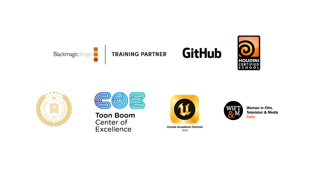 Grazie alle prestigiose partnership attivate dall’Area Media Design and New Technologies di NABA, a conferma dell’eccellenza della sua metodologia didattica e del costante aggiornamento della sua Faculty, l'Accademia è Centre of Excellence di Toon Boom, ha ottenuto lo status Gold come Unreal Academic Partner per il 2025 ed è certificata come GitHub Campus. NABA è inoltre la prima Accademia di Belle Arti accreditata come Rookies Certified School e l’unica Accademia italiana a essere riconosciuta come Houdini Certified School.